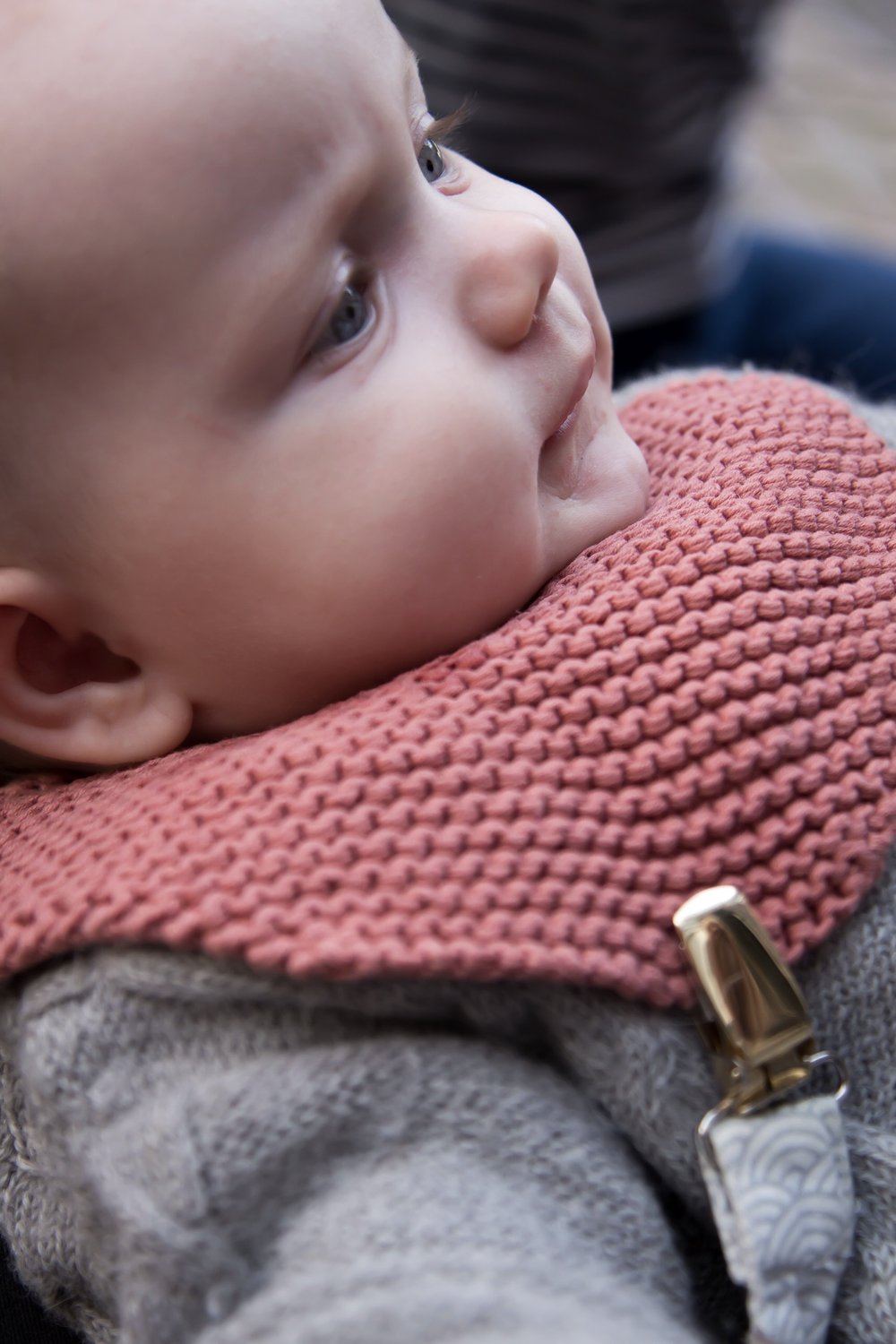 Savlesmækken strikkes med dobbelttråd nedefra og op i retstrik.